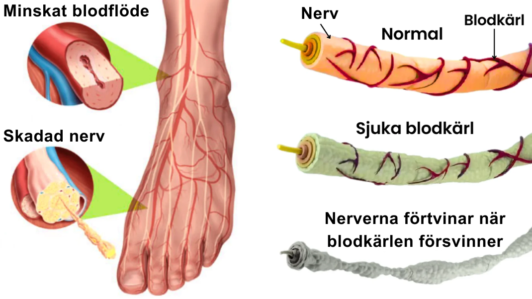 Detta förbättrar blodcirkulationen till dina skadade och svultna fotnerver – vilket i sin tur hjälper kroppen att hantera skadorna på fotnerverna!